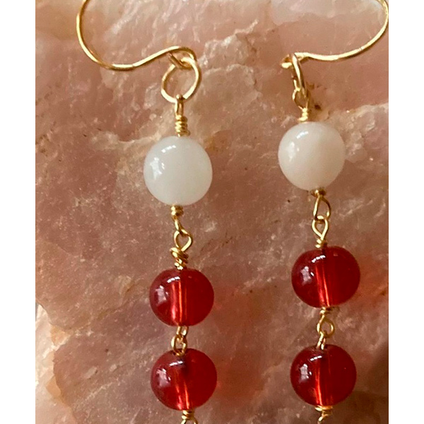 Aros dorados con cuentas de Ágata celeste, rojo, Ojo de Tigre y Perla.