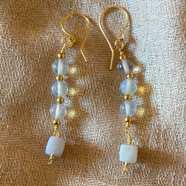 Aros de Piedras de colores delicados. Cómo son las Piedras Luna y Piedras Naturales cuadradas.