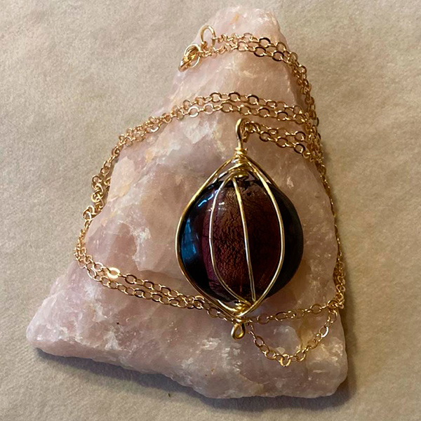 Delicado Colgante de Perla, Nácar, Cuentas y Corazón Gold y Cadena enchapada en oro. Mide 65 cms.