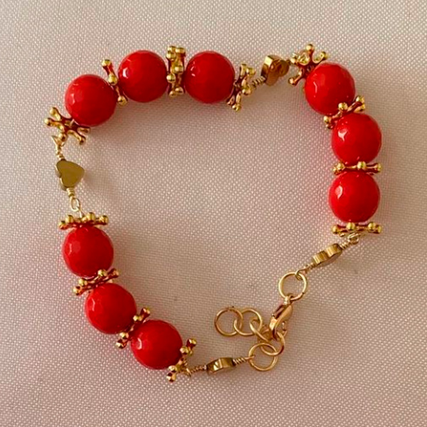 Llamativa Pulsera Adaptable de Ágata Natural Roja encendida co corazones y Separadores Gold
